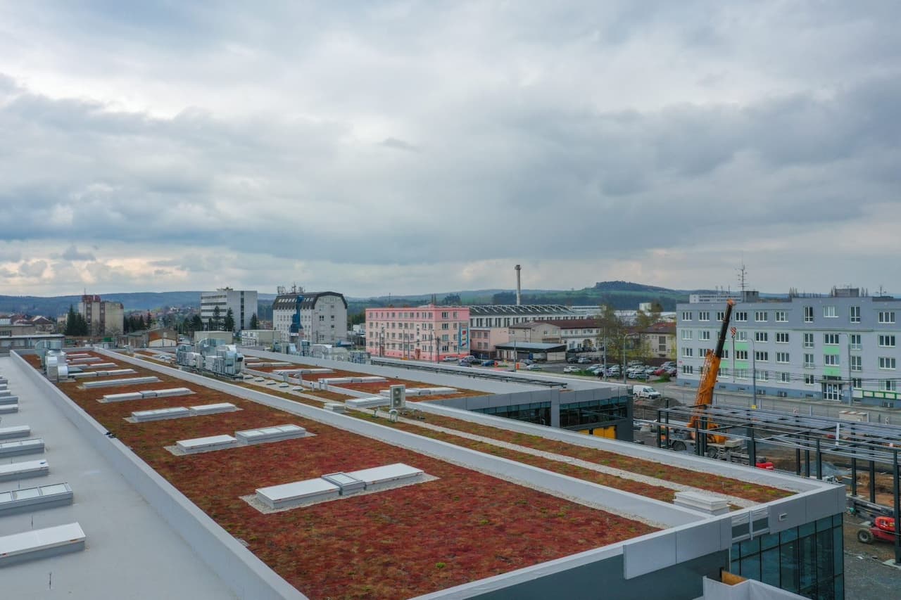 Celkový výměra střechy je 20.000 m2 z toho je zelená část 17.000 m2.